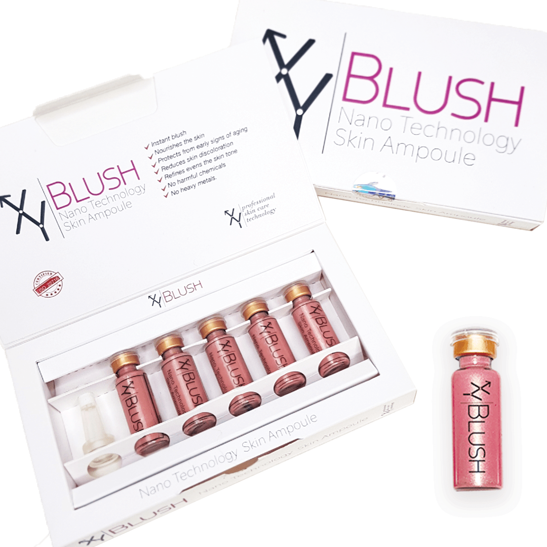 Blush Nano Technology Skin Ampoule – Peach & PinkΒ  is the world's first nano-blush ampoule, marking a new era in cosmetics by being applied beneath the skin during the BB Glow procedure. This innovation provides effects that can last up to a month. The highly opaque pigment rejuvenates the face, adding a captivating charm. Its lightweight texture glides smoothly onto the cheekbones without leaving noticeable lines or patches. The blush serum stays intact, doesn't clog pores, and blends seamlessly with any foundation or base. Additionally, it nourishes and hydrates the skin.